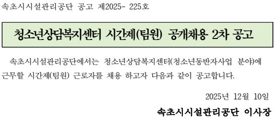 제목청소년상담복지센터 시간제(팀원) 공개채용 2차 공고
